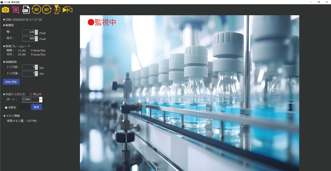 動画は”トリガ前時間”+”トリガ後時間”の長さとなります。(多少の誤差を含みます)